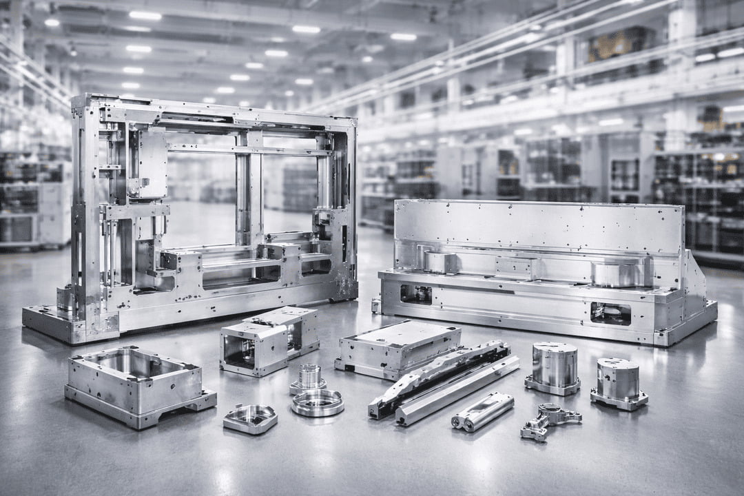 Structural frames, machine housings and precision components engineered for automation systems and industrial machinery. Designed for rigidity, integration accuracy and scalable production.